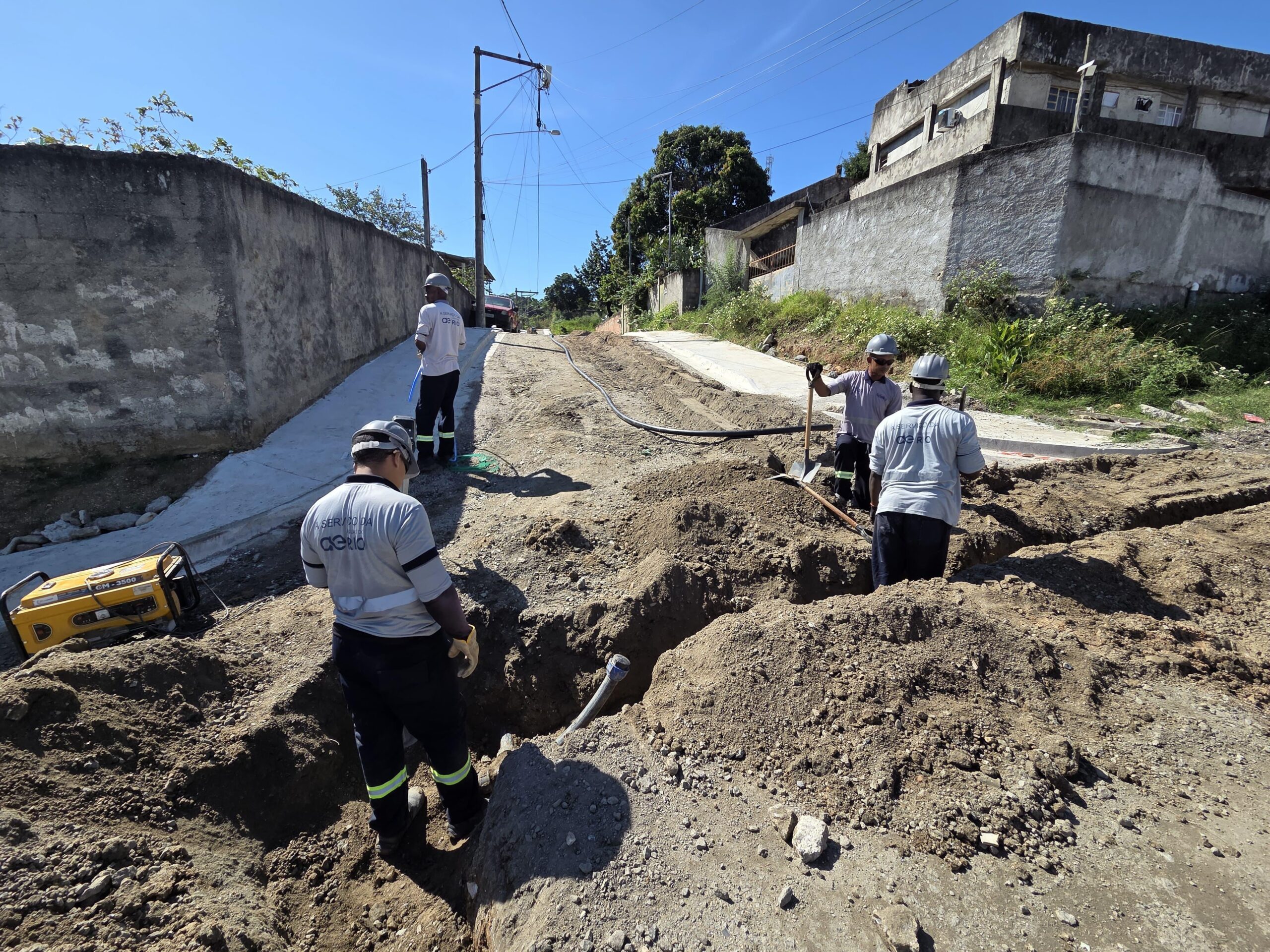 Depois de anos sofrendo com torneiras secas e baldes pra cima e pra baixo, a água tá chegando com força no bairro Sacramento, em São Gonçalo! Uma nova rede de 17 km de extensão tá quase pronta e vai levar abastecimento regular pra mais de 5 mil pessoas.